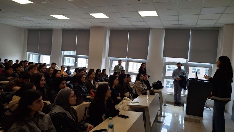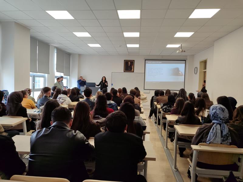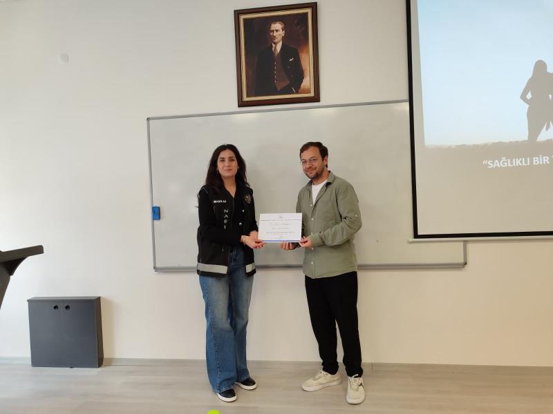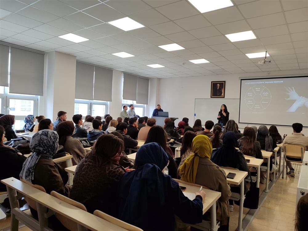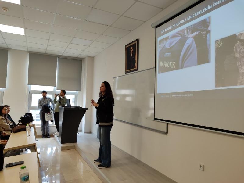 Bu kapsamda, Fakültemiz öğrencilerine yönelik bilgilendirme eğitimi Narkotik Suçlarla Mücadele Şube Müdürlüğü’nde görevli Polis Memuru Leyla Kamanlı’nın sunumuyla gerçekleştirildi.
